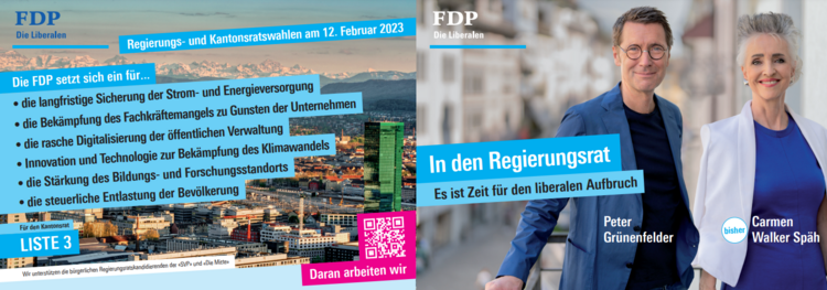 Am 12. Februar 2023 ist Wahltag und wir danken schon heute, dass Sie für die Kantonsratswahlen die Liste 3 für Ihren Bezirk / Wahlkreis in die Urne legen und Carmen Walker Späh sowie Peter Grünenfelder ihre Stimme schenken!